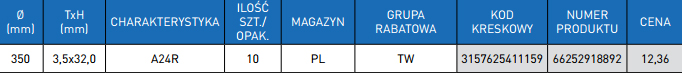 Atlas ŚCIERNICA DO PRZECINANIA I SZLIFOWANIA 350x3,5x32,0mm