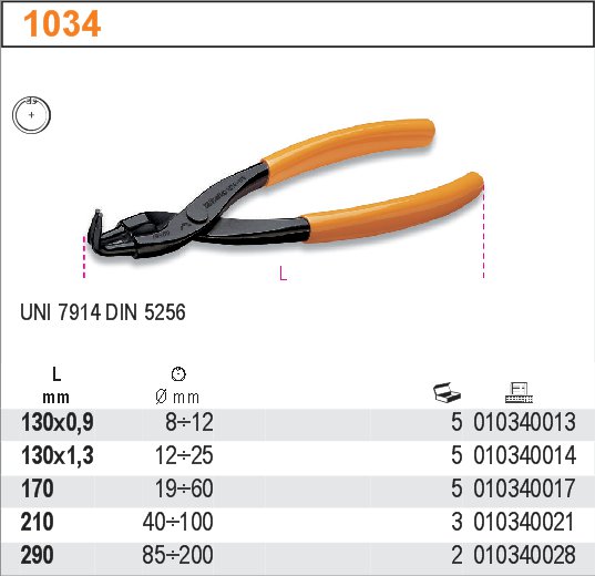 Beta 1034 Szczypce do pierścieni zabezpieczających wewnętrznych, odgięte o 90°