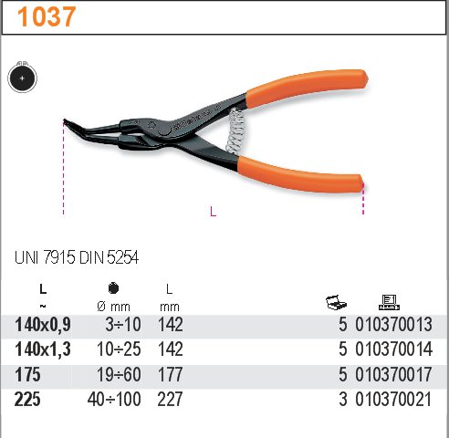 Beta 1037 Szczypce do pierścieni zabezpieczających zewnętrznych, odgięte o 45°
