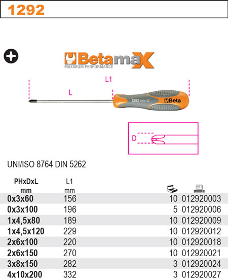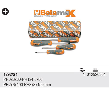 Beta 1292/S4 Zestaw wkrętaków krzyżowych profil Phillips, z rękojeścią kompozytową