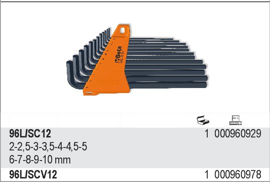 Beta 96L/SC12 KOMPLET KLUCZY TRZPIENIOWYCH KĄTOWYCH MODEL 96L/SC12 12 SZTUK 2-10MM, W UCHWYCIE