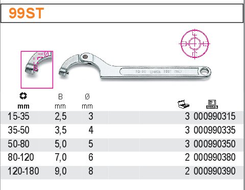 Beta 99ST Klucze hakowe z okrągłym bolcem, przegubowe