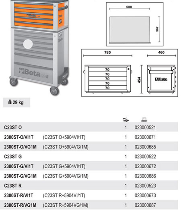 Beta C23ST - 2300 Skrzynia narzędziowa z pięcioma szufladami