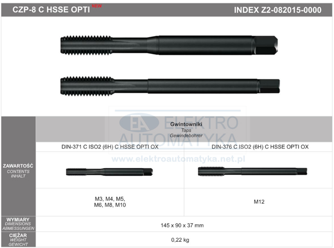 - gwintownik wysokowydajny, wg DIN-371-C,
