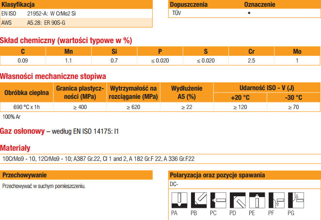 Pręt gatunku G CrMo2Si / ER 90S-G do spawania metodą TIG stali o zawartości 2,25Cr1Mo oraz o zbliżonym składzie