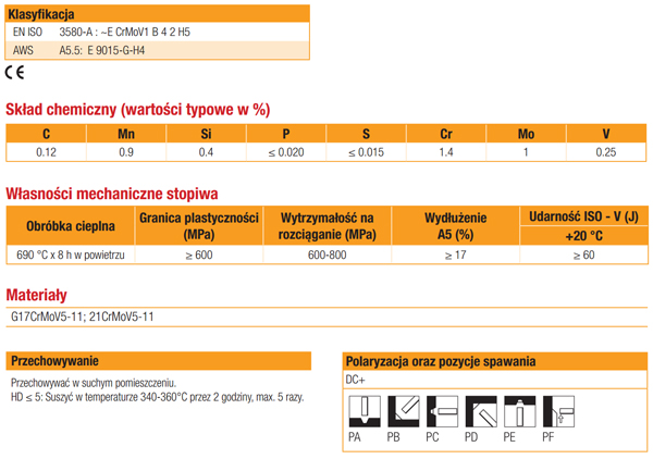 Elektroda ta znajduje zastosowanie do spawania części turbin parowych, zaworów itp. elementów ze stali i staliw pracujących w temperaturze do 600°C.