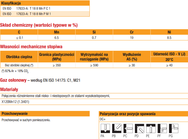 Miedziowany, rutylowy drut proszkowy o wszechstronnym zastosowaniu, do spawania austenitycznych stali nierdzewnych,