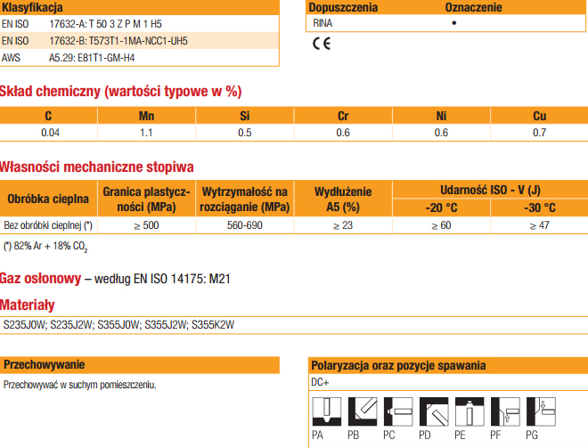 Jako gaz osłonowy zaleca się stosowanie mieszanki na bazie argonu Ar+CO2