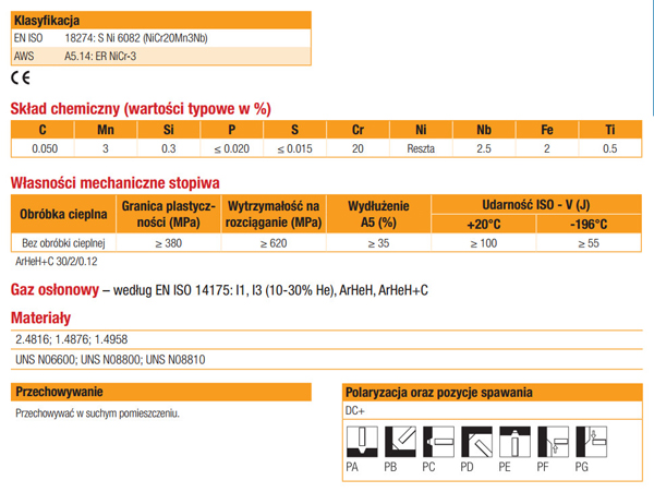 Drut lity gatunku S Ni 6082 / ER NiCr-3 do spawania metodą MIG stopów niklu, żarowytrzymałych i żaroodpornych stali Cr-Ni pracujących w podwyższonych temperaturach.
