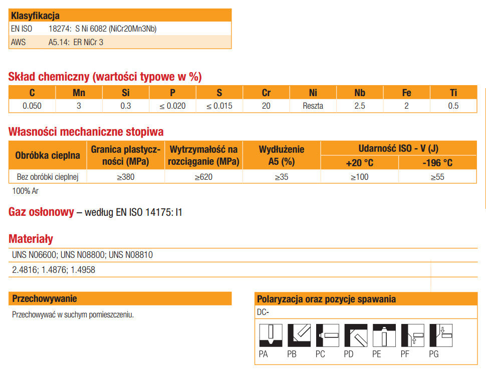 Pręt gatunku S Ni 6082 / ER NiCr-3 do spawania metodą TIG stopów niklu, żarowytrzymałych i żaroodpornych stali Cr-Ni pracujących w podwyższonych temperaturach.