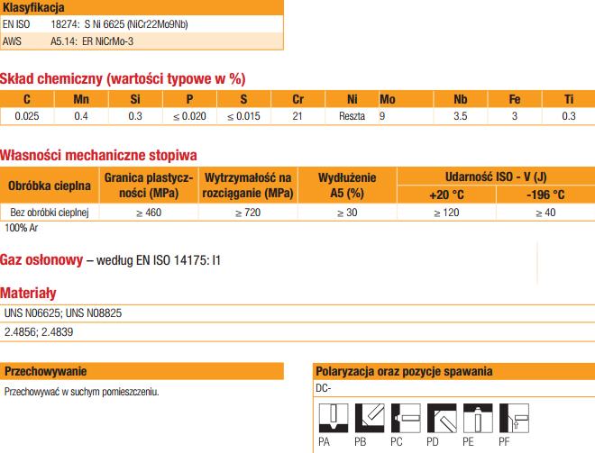 Pręt do spawania metodą TIG stopów niklu gatunku INCONEL 625 i 825 oraz innych o zbliżonym składzie chemicznym.