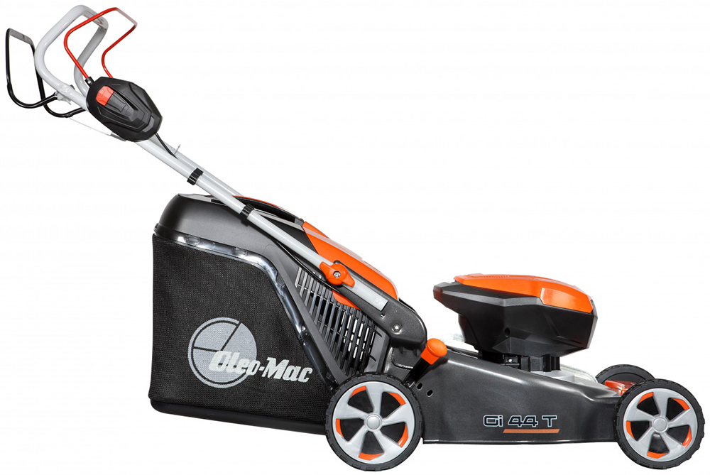 Oleo-mac Gi 44 T Kosiarka akumulatorowa - Kosiarka akumulatorowa klasy premium. Nowoczesny silnik indukcyjny oraz wysokiej jakości akumulator zapewnia STABILNOŚĆ dostarczanej mocy co oznacza brak spadku obrotów i brak negatywnych odczuć podczas pracy. Kosiarka pracuje cały czas tak samo wydajnie, niezależnie od tego w jakim stopniu jest rozładowany akumulator.