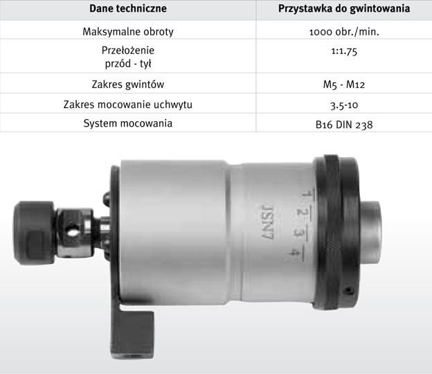 - Zintegrowany mechanizm szybkiego ruchu powrotnego, szczególnie wydajny przy seryjnym gwintowaniu