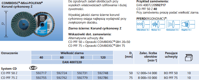Pferd COMBIDISC-Mini-POLIFAN Ziarno ścierne Korund cyrkonowy Z