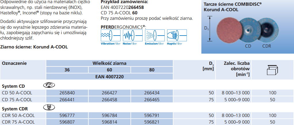 Pferd Tarcze ścierne COMBIDISC Korund A-COOL ziarno ścierne