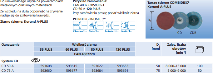 Pferd Tarcze ścierne COMBIDISC Korund A Plus Ziarno ścierne