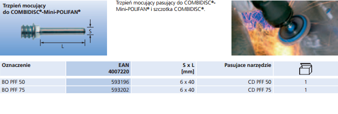 Pferd Trzpień mocujący do COMBIDISC-Mini-POLIFAN