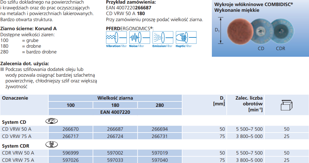 Pferd Wykroje włókninowe COMBIDISC Wykonanie miękkie ziarno ścierne Korund A