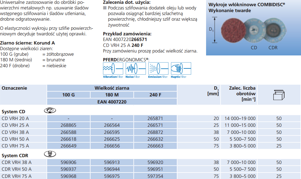 Pferd Wykroje włókninowe COMBIDISC Wykonanie twarde ziarno ścierne Korund A