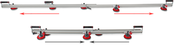 SLIM EASYTRANS to zestaw transportowy zaprojektowany specjalnie do przenoszenia wielkoformatowych płyt porcelanowych. SLIM EASYTRANS może być używany jako uzupełnienie przecinarki SLIM CUTTER (Ref. 18911). Zestaw składa się z dwóch rozsuwanych, regulowanych prowadnic 160 i 320 cm. Za pomocą 10 przyssawek mocuje się je do powierzchni płyty, wcześniej czyszcząc ją dokładnie z kurzu i innych zabrudzeń. Zestaw ma 6 uchwytów (po 3 na każdej prowadnicy), które można pozycjonować na całej długości prowadnic, dopasowując system do aktualnej sytuacji. Maksymalny udźwig zestawu to 60 kg.