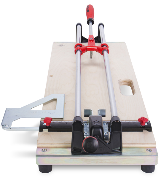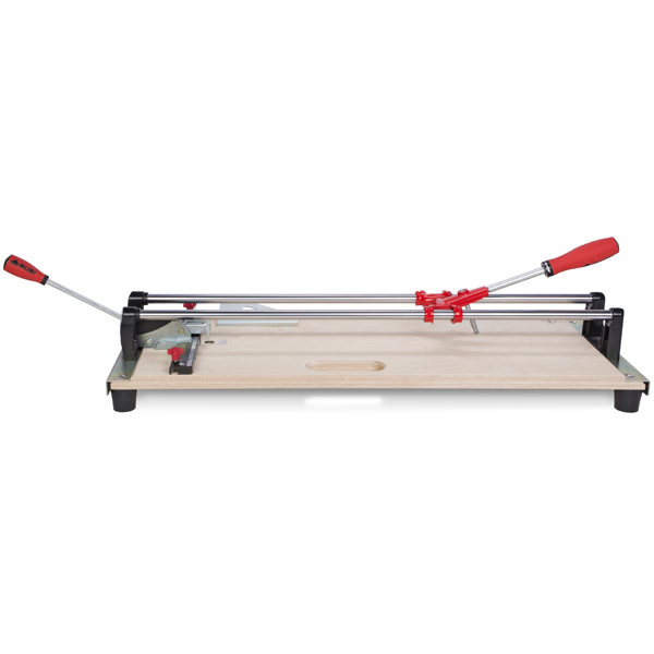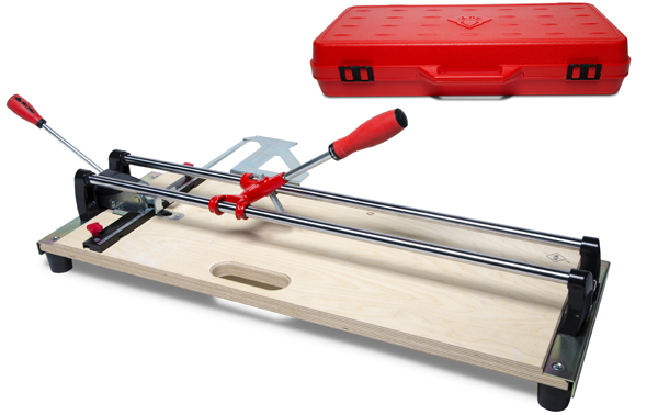 Przecinarki ręczne RUBI TF-MAX to bardzo trwałe i funkcjonalne narzędzie. Przecinarki TF-MAX idealnie nadają się do intensywnych cięć płytek ceramicznych, w szczególności glazurowanych (typ BIIa lub BIII) i do częstych cięć płytek porcelanowych (BIa). Głównym elementem odróżniającym przecinarki TF-MAX od pozostałych modeli, także tych z łamaczem jednopunktowym, jest podstawa wykonana z drewnianej sklejki wodoodpornej, która przekłada się na dużą żywotność narzędzia. Duży przymiar boczny ułatwia lepsze pozycjonowanie płytek oraz większą precyzję cięć seryjnych, zarówno prostych jak i pod kątem. Wszystkie modele przecinarek ręcznych TF-MAX zawierają praktyczny i wydajny łamacz jednopunktowy z maksymalną siłą nacisku 800 kg zaprojektowany specjalnie do cięcia twardych materiałów o grubości do 15 mm. Łamacz posiada tzw. funkcję SMART POWER regulującą nacisk w zależności od grubości płytki, dzięki czemu maksymalna siła jest aplikowana tylko do płytek o największej grubości. Uchwyt drążka w przecinarce TS-MAX jest wykonany z podwójnego materiału, ponadto ma ergonomiczny kształt, co zapewnia wygodę użytkowania. Przecinarki ręczne TF-MAX posiadają dwie prowadnice stalowe chromowane, szlifowane i kalibrowane oraz zabezpieczone przed korozją. System podwójnych prowadnic gwarantuje lepszą widoczność, a dzięki temu możliwie największą dokładność każdego cięcia. Możliwość stosowania wszystkich wymiennych noży tnących z zakresu od 6 do 22 mm pozwala na wykorzystywanie przecinarek TF-MAX do cięcia każdego materiału ceramicznego z uzyskaniem maksymalnej wydajności i jakości cięcia. Przecinarki TF-MAX posiadają na wyposażeniu standardowym jeden nóż tnący 8 mm. Przecinarki dostępne są w dwóch rozmiarach - 93 cm i 66 cm. Te krótsze mogą być opcjonalnie wyposażone w odporną na zniszczenia walizkę ochronną.