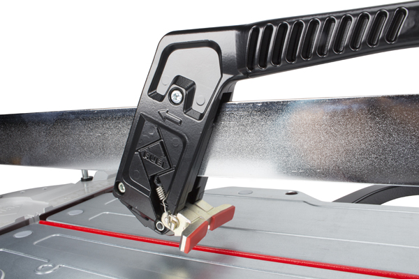 Na przecinarkach TP-S pracuje się poprzez pchnięcie w przód, a ergonomiczna rączka z łamaczem o sile nacisku do 1000 kG pozwala na szybkie cięcie i łamanie płytek o grubości 5-20mm.