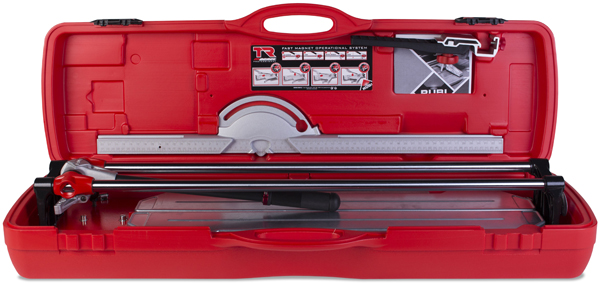 Najistotniejszą cechą przecinarki ręcznej TR-MAGNET jest mobilny łamacz wielopunktowy, dzięki któremu przecinarki te doskonale nadają się do cięć diagonalnych. Ponadto przymiar obrotowy występujący w tym modelu pomaga uzyskać bardzo wysoką dokładność cięć. Przecinarki ręczne TR-MAGNET nadają się do intensywnych cięć płytek ceramicznych (szczególnie typ BIII) i terakotowych (typ BIIa), jak również częstych cięć płytek porcelanowych (typ BIa) o grubości do 15 mm. Łamacz wielopunktowy przecinarek RUBI TR-MAGNET zapewnia optymalną jakość cięć diagonalnych wykonywanych od jednego do drugiego narożnika płytki. Ponadto model TR-MAGNET wyróżnia się systemem łamacza, który umożliwia operatorowi pracę jedną ręką. System MAGNET blokuje łamacz w górnej pozycji ułatwiając nacinanie płytki oraz poprawiając widoczność. Następnie poprzez prosty ruch drążka do góry opuszcza się stopkę łamacza, która może wywrzeć nacisk maksymalnie 800 kg zapewniając czyste i precyzyjne cięcie. Wszystkie modele gamy TR-MAGNET posiadają przymiar obrotowy z centralnym punktem mocowania umożliwiający szybkie i precyzyjne wyznaczanie kąta cięcia w zakresie od -45º przez 0° do 45°. Uzupełnieniem przymiaru obrotowego jest przymiar boczny wykonany z plastiku technicznego bardzo pomocny w wykonywaniu cięć seryjnych. Przecinarki RUBI TR-MAGNET posiadają mocną dwuwarstwową podstawę aluminiową z blatami tłumiącymi nacisk oraz podporami pod płytki dużych formatów. Prowadnice w przecinarkach TR-MAGNET są szlifowane i kalibrowane oraz zabezpieczone antykorozyjnie. System podwójnych prowadnic gwarantuje lepszą widoczność, a dzięki temu możliwie największą dokładność każdego cięcia. Możliwość stosowania wszystkich wymiennych noży tnących z zakresu od 6 do 22 mm pozwala na wykorzystywanie przecinarki TR-MAGNET do cięcia każdego materiału ceramicznego z maksymalną wydajnością i jakością cięcia. Przecinarki ręczne TR-MAGNET posiadają na wyposażeniu standardowym dwa noże tnące: jeden 6 mm do cięcia płytek ceramicznych ściennych i 10 mm do płytek gresowych lub kamiennych. Kolejną istotną cechą wyróżniającą przecinarki RUBI jest walizka transportowa ze wzmocnionymi zawiasami i klamrą ułatwiającą przewożenie i przechowywanie sprzętu.