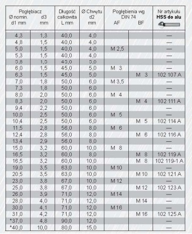 Pogłębiacz stożkowy z wysokowydajnej stali szybkotnącej. Zawiera dodatek kobaltu. Dzięki głębokiemu szlifowaniu spiralnego rowka wiórowego w technologii CBN otrzymuje się idealnie ostre krawędzie tnące. Doskonałe narzędzie do pogłębiania otworów i usuwania zadziorów. Najlepsze rezultaty uzyskuje się stosując niewielkie prędkości skrawania.