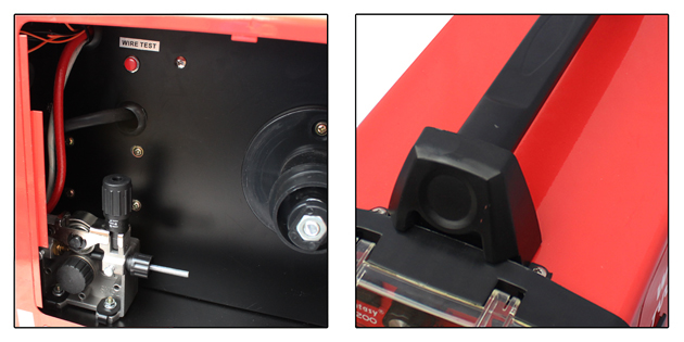 Spawarka posiada płynną regulację prądu spawania, płynną regulację prędkości posuwu drutu, regulację indukcyjności, wyświetlacze LCD napięcia łuku, prądu spawania oraz wyposażona jest w przeciążeniowy układ zabezpieczenia termicznego zapobiegający przed przegrzaniem.