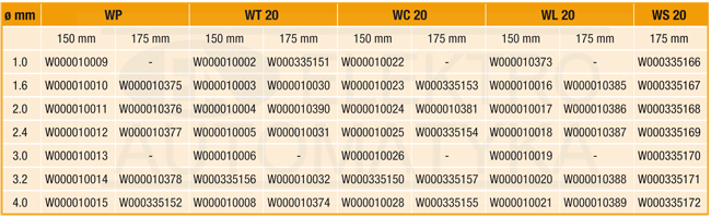Weldline / Oerlikon WP WC20 WL20 WS20 Elektrody wolframowe Weldline